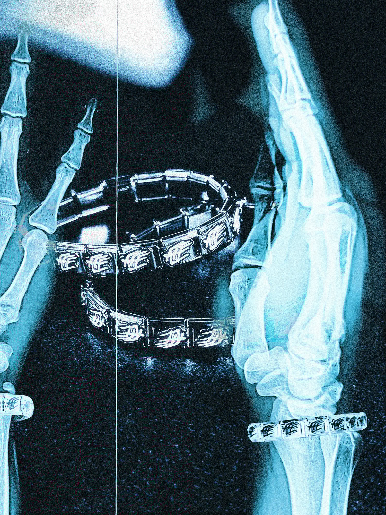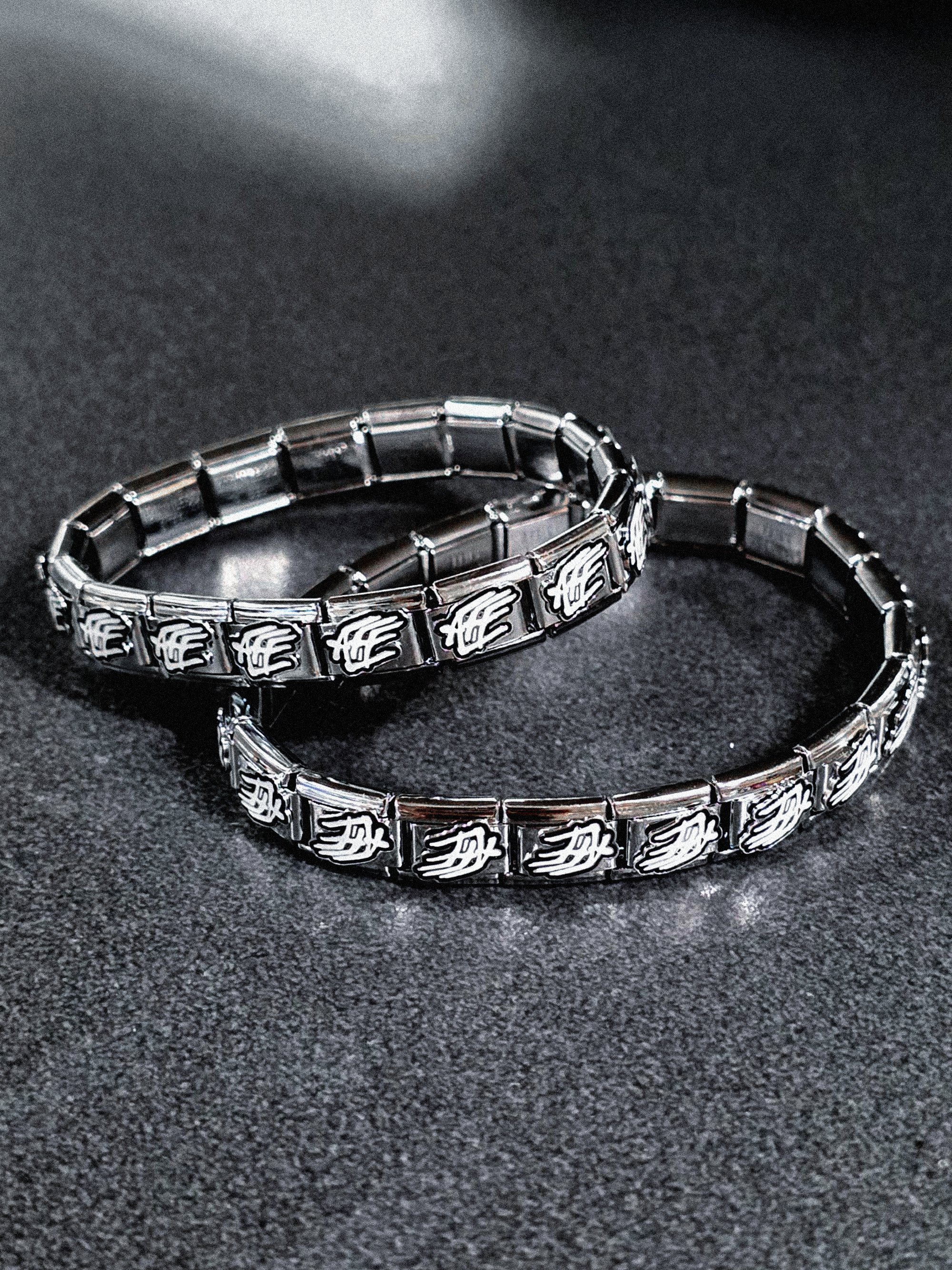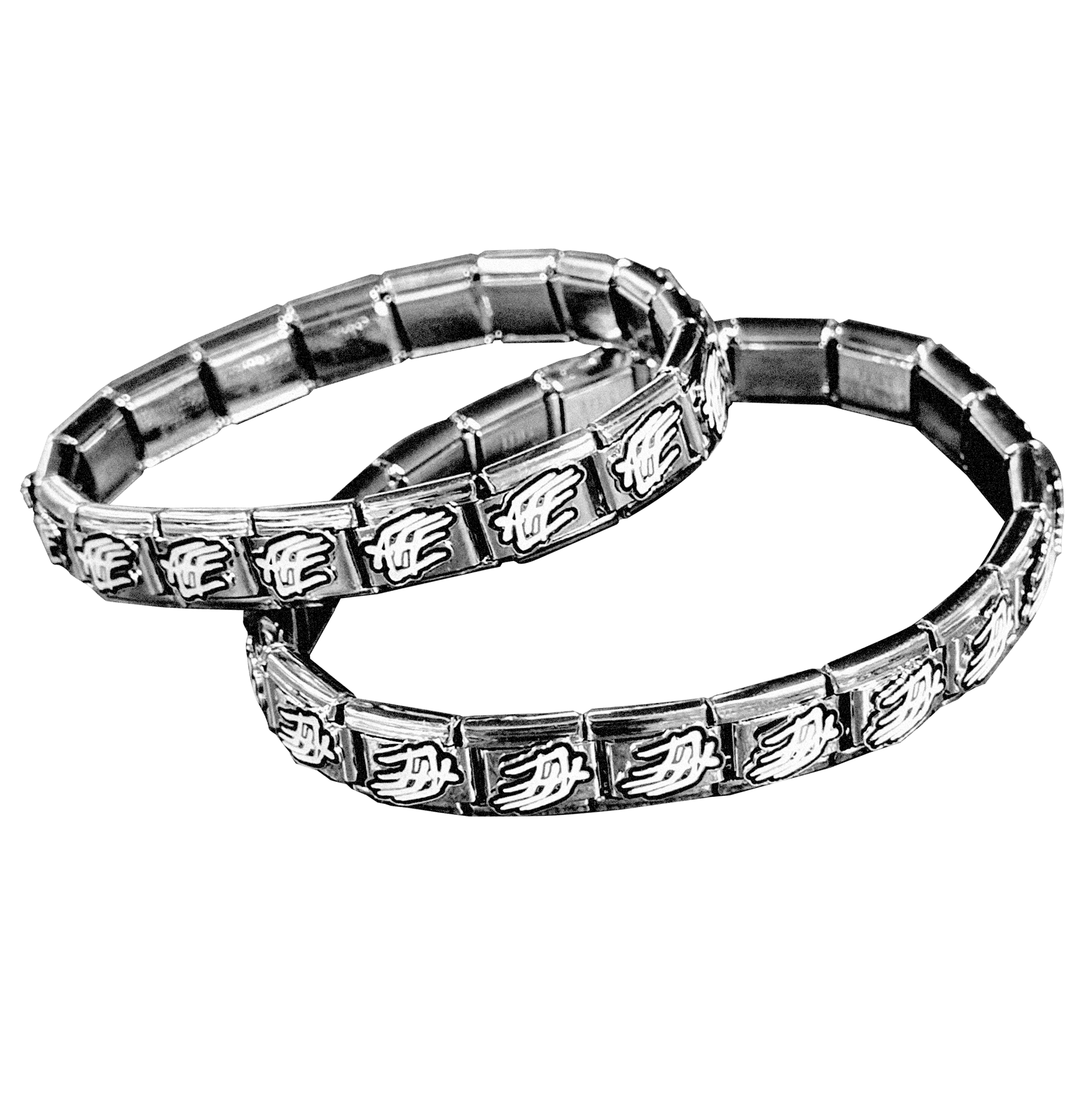 Logo finish is Chrome, White & Black. Bracelet measurements are in inches