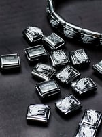 Stainless steel Italian charms finished in chrome with hand welded enamel AH logo's.