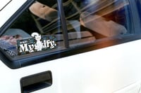 Translation of Japanese writing is "Mystify"